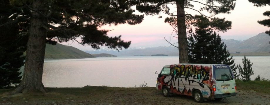 Eine Woche verbrachte ich damit, an einem abgelegenen Parkplatz unter hohen Bäumen am Lake Wakatipu zu übernachten, die ersten Gedichte meines Lebens zu verfassen und mich immernoch über mein Gefährt zu freuen. Ich hatte eine zweite Autobatterie, an der ich alle Geräte wie Kamera, Tastatur, Tablet und leider kein Outdoorhandy mehr (das war mir tatsächlich beim Duschen in Christchurch unter dem Hostelkopfkissen weg geklaut worden) Tag und Nacht aufladen konnte und durch diese selbst nach einer ganzen Nacht im Bus unter laufender Musik und brennenden Lichtern der Motor am nächsten Morgen noch ansprang. Oft skypte ich morgends beim Bus-Frühstück mit dem Nino und wir machten ganze Heldenreisen zusammen, indem wir miteinander kochten, Sport machten, heulten, stritten, lachten und philosophierten. Ich liebte diese Normalität, die wir trotz der Entfernung aufrecht erhalten konnten, aber wusste auch, dass es die richtige Entscheidung war, diese Erfahrung zu teilen. Denn wer weiß nicht, was Zeit, Nachdenken, Reisen und weit entfernte Orte für Veränderungen im eigenen Wesen hervorrufen können. Eine so entscheidende Entwicklung alleine zu vollziehen, hätte auf Dauer auch einen Keil ins junge Paradies getrieben. Und doch war ich dankbar dafür, ein paar dieser Erkenntnisse mit mir alleine sammeln zu dürfen. Denn ich war es, der ich mich stellen wollte.